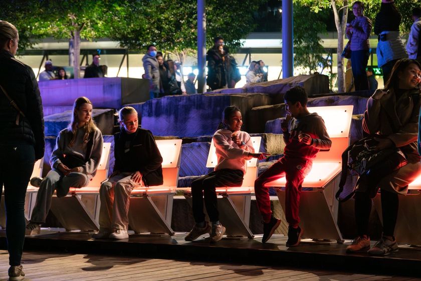 An international favorite showcased at Vivid Sydney, Amsterdam Light Festival and Bright Brussels, Chairwave transforms ordinary seating into an interactive experience that encourages spontaneous social encounters. At City Place, where the installation is making its US debut, the installation will feature 15 chairs spanning approximately 40 feet in length, creating a sculptural wave of light and motion that invites engagement. When one person sits, the seat next to them gently folds down, extending an open invitation for another to join. The movement and light create a visual wave of connection that draws people together — a subtle reminder of the joy in everyday interactions.