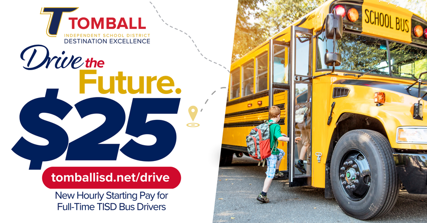 We are always looking for qualified individuals who want to join Team Tomball. If you—or someone you know—are interested in becoming a bus driver, please visit tomballisd.net/drive.