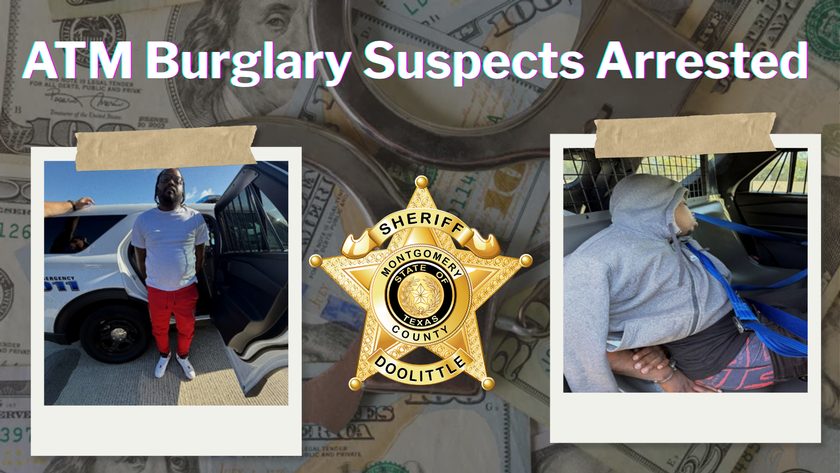 MONTGOMERY COUNTY, TX -- The Montgomery County Sheriff’s Office (MCSO) successfully apprehended two individuals following a felony ATM burglary/theft that occurred in the Dallas area. The arrests were a direct result of effective interagency collaboration between the MCSO Crime Reduction Unit (CRU), the Dallas Police Department (DPD) Crime Reduction Unit, and the Huntsville Police Department.