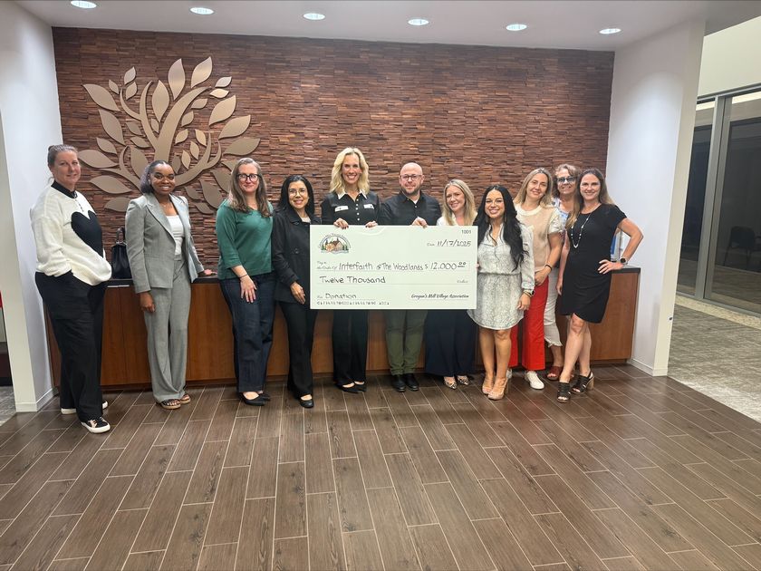 THE WOODLANDS, TX -- The Grogan's Mill Village Association donated $12,000 to the Interfaith Food Pantry this month. Association reps were eager to thank all those that support The Woodlands Farmers Market so that the GMVA can continue to support the community in this way. The Food Pantry is available to individuals and families who are facing food insecurity. Donations are always needed and appreciated in many forms: financial contributions, non-perishable food, infant products including diapers and formula, personal hygiene items, paper products, cleaning supplies, and gift cards to area grocery stores.