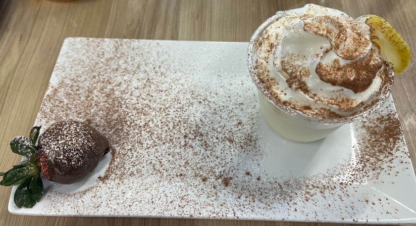 The dessert was a lovely cupped Lemon Panna Cotta covered with whipped cream and a lemon slice. The sweet was served with a chocolate covered strawberry, topped with a coating of chocolate powder. It was perfectly creamy, with its tasty sweet and tart filling, that made for a wonderful end to lunch. Again, it’s still hard to believe that the cooks creating these dishes are teens still in high school, and with the setting and conversation, you don’t feel that you are in a learning environment at all.
