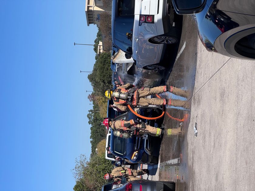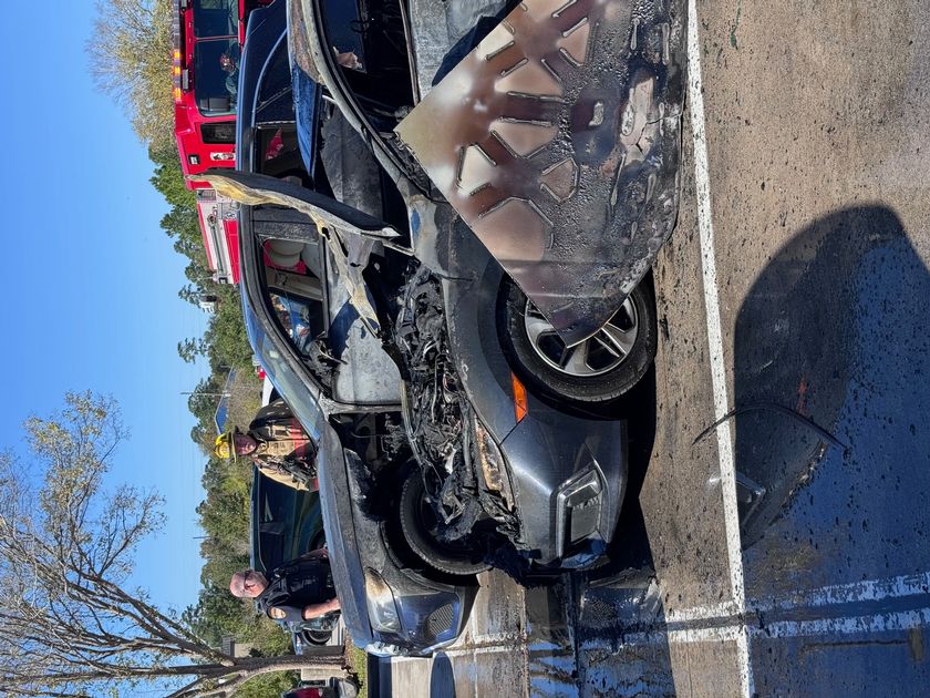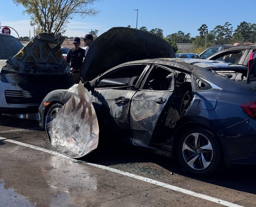 THE WOODLANDS, TX – Emergency crews descended at the Target Shopping Center parking lot on FM 1488 and FM 2978 after a Honda sedan caught fire after an apparent battery explosion.
