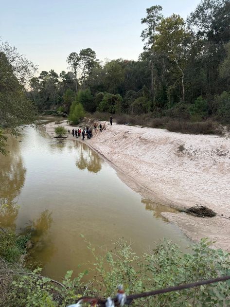 Upon arrival, firefighters, medics, and Montgomery County Sheriff’s Office deputies were directed to a sand bar on the west bank of Panther Creek, just south of the pedestrian bridge. There, a 12-year-old girl on a family outing had been completely buried when a large hole she was digging in the sand suddenly collapsed.