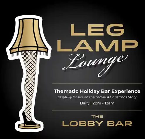 Step into the Leg Lamp Lounge at The Lobby Bar for a playful, holiday-themed experience inspired by A Christmas Story. Sip signature cocktails like the bourbon-based Oldsmobile Man or the creamy espresso martini Ho Ho Ho…No! Enjoy themed shots and playful combos, and soak in the nostalgic décor—all open daily from 2 PM to midnight, December 1–31.