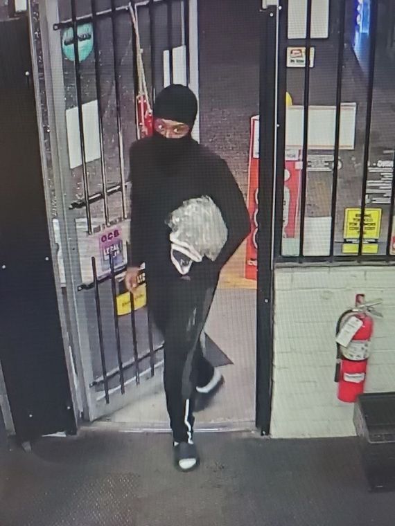 Investigators also believe there may have been an accomplice: a Black female who entered the store a few minutes prior to the theft. She was described as wearing a jacket with “JUICY” printed along the bottom.