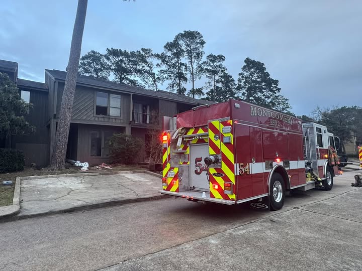 CONROE, TX -- At around 2:30 PM today, Firefighters from the Montgomery Fire Department, (Montgomery County ESD 2), were dispatched to reports of a fire in a residential building in the Walden Community near Lake Conroe. Crews from Station 54 in Walden were on scene very quickly and reported fire and smoke coming from a condominium complex in the 3200 block of Poe Drive.