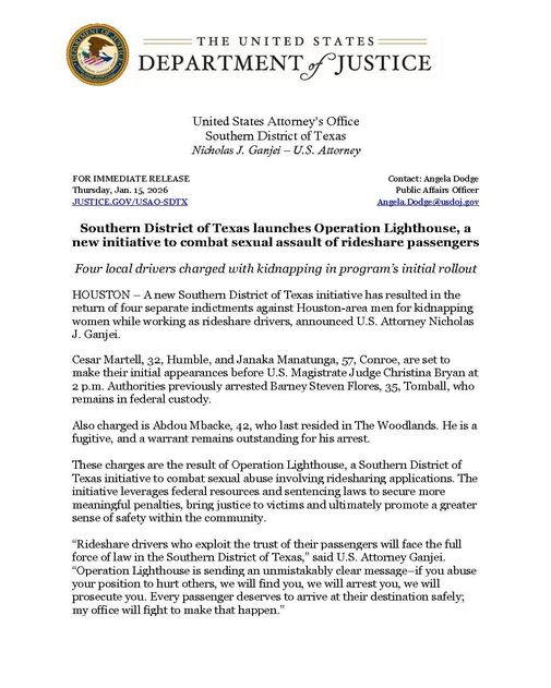 This multi-agency initiative targets rideshare drivers who exploited their positions of trust to commit acts of sexual assault and kidnapping. These individuals, who were supposed to be a safe resource for our citizens, now face federal kidnapping charges and the possibility of life in federal prison.