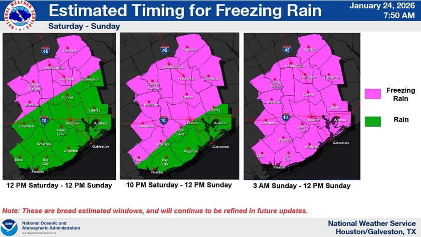 Recent forecasts indicate the cold front is moving faster than originally anticipated and is delivering much colder air, similar to conditions recently observed in the Texas Panhandle. Since yesterday’s update, meteorologists are now predicting the potential for higher ice accumulations, with freezing rain expected to begin later today.