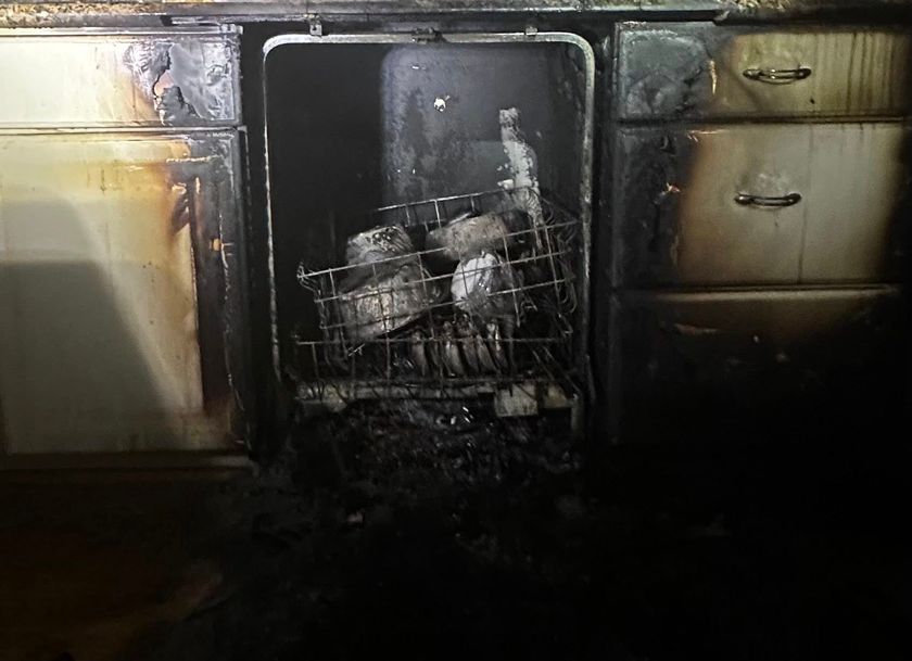 All four residents were safely alerted by working smoke alarms and evacuated prior to the arrival of fire crews. The fire is believed to have originated in the dishwasher motor assembly, and damage was limited to the dishwasher and surrounding cabinetry.