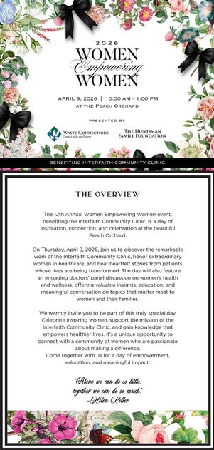 Interfaith Community Clinic to Host Annual Women Empowering Women Luncheon Presented by Waste Connections and The Huntsman Family Foundation