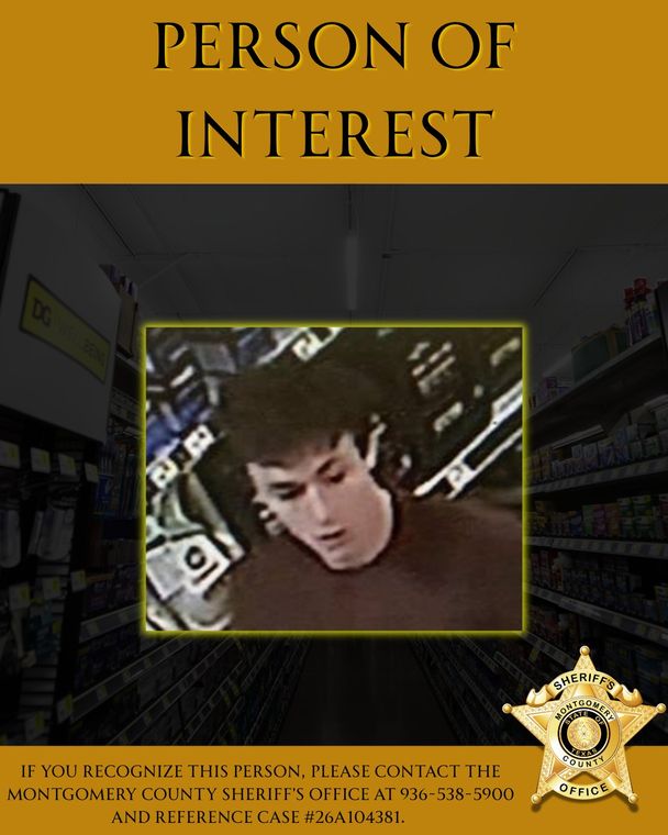 CONROE, TX -- The Montgomery County Sheriff’s Office is requesting the public’s help in identifying a person of interest involved in an indecent exposure investigation from an incident that occurred on March 26, 2026, at the Dollar General located at 16708 FM 1485, Conroe, Texas.