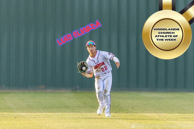 CONROE – The Oak Ridge War Eagles have had an outstanding baseball season so far, currently leading the district with a 9-0 record and looking like the team to beat in District 13. The offense has been exceptional, with strong batting throughout the 9-player lineup, and the ability to score double-digit runs in any game. Leading the offense for the War Eagles this week is Luis Olmeda, who earns the Woodlands Church Athlete of the Week for his impressive performance against Grand Oaks.