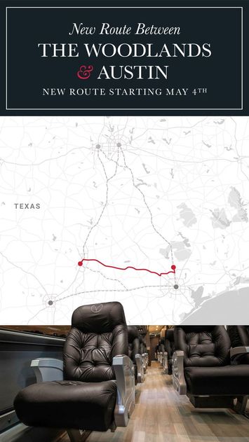 Beginning May 4, 2026, The Woodlands and Austin will be connected by multiple daily departures seven days a week.
