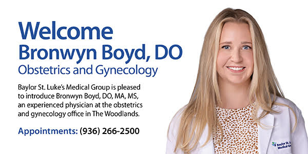 THE WOODLANDS, TX -- St. Luke's Health–The Woodlands Hospital is pleased to announce that Dr. Bronwyn Boyd, a board-certified Obstetrics and Gynecology physician, has joined its esteemed medical staff.