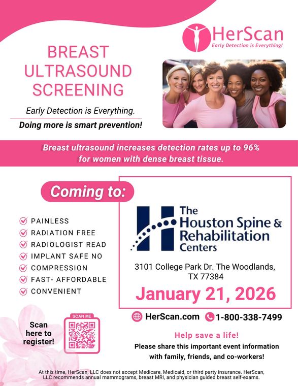 Houston Spine & Rehabilitation Centers and HerScan Partner Again for Breast Ultrasound Screening Event in The Woodlands
