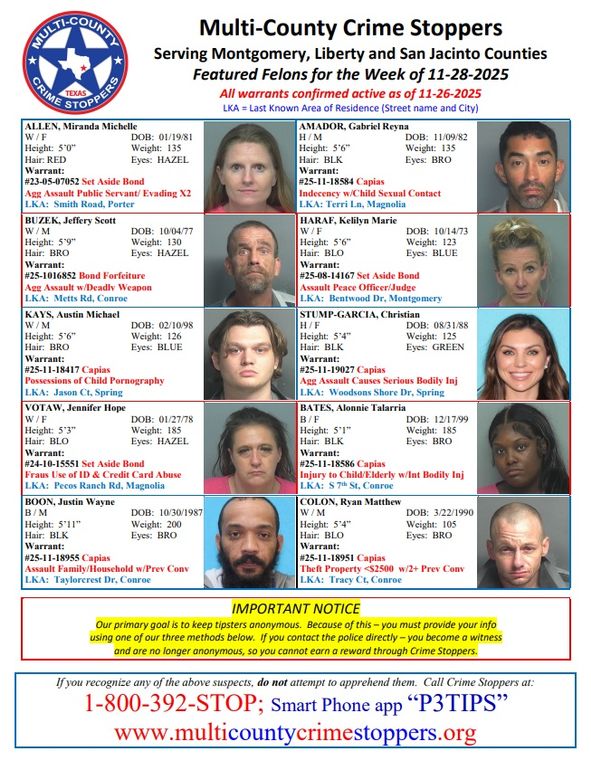 Montgomery County Featured Felons for 11/28/2025