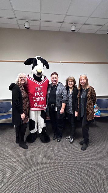 'Ms. Shelly' (center) surrounded by friends