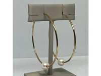 14k Yellow Gold Fresh Water Pearl Hoop Earrings / Bassali