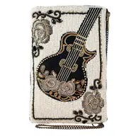 Mary Frances Crossbody Phone Bags are the perfect multi-functional fashion statement! Slide your phone in the top slip pocket and store other essentials in the side zip pocket. Easily fits inside a larger bag to protect your phone and it's ready to grab and go. Guitar Player is the perfect accessories for any rocker girl! Dimensions: 4.75 x 0.5 x 7.75", Strap Length: 51", Strap Drop: 24", Removable crossbody chain strap, top compartment, side zipper compartment, fits cell phone