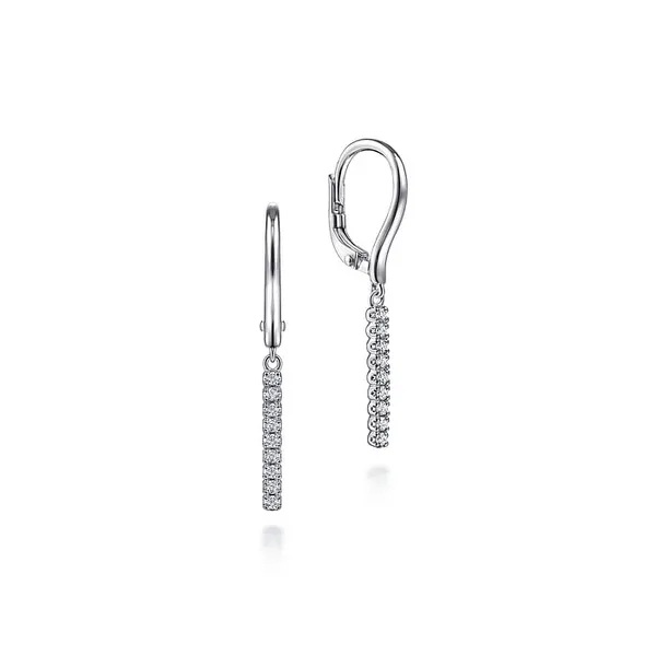 14K White Gold Diamond Bar Drop Leverback Earrings / Gabriel & Co