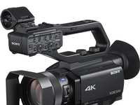 The Sony PXW-Z90V 4K HDR XDCAM with Fast Hybrid AF is a high performance, palm-sized XDCAM camera. It is suitable for corporate events, broadcast news, and television production. It offers phase-detection autofoucs (AF) and HDR capabilities on a stacked 1" Exmor RS CMOS sensor with UHD 4k (3940 x 2160) resolution, a 12x Zeiss optical zoom, and OLED viewfinder, and a 3.5" touchscreen LCD monitor.