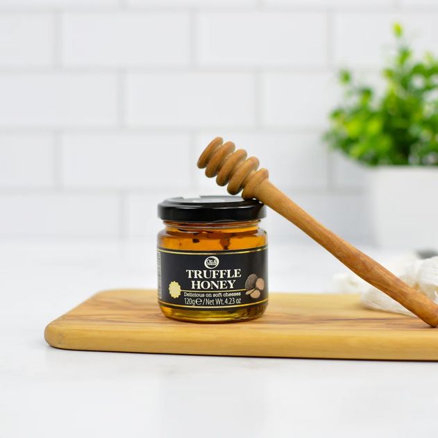 Elevate your cheese and meat platters with our exquisite Truffle Honey, made with real truffle slices, paired perfectly with a stylish Olive Wood Honey Spoon. Ideal for entertaining guests or as a thoughtful gift for honey enthusiasts.