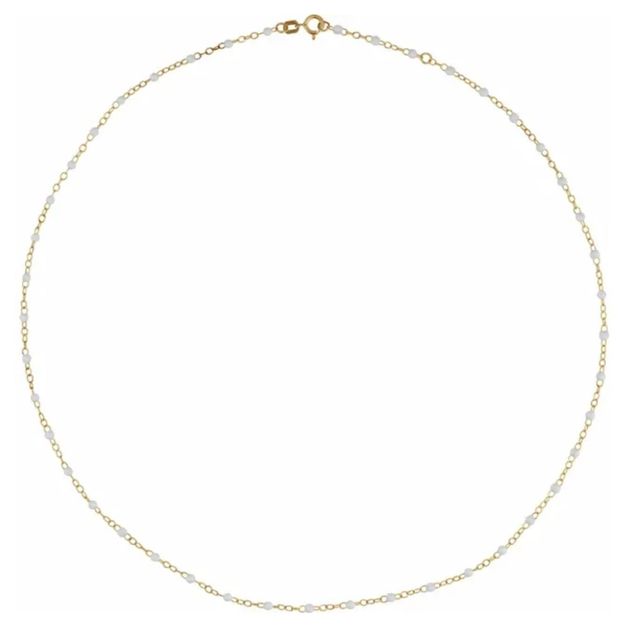 14K Yellow Gold and Clear Enamel Bead Necklace