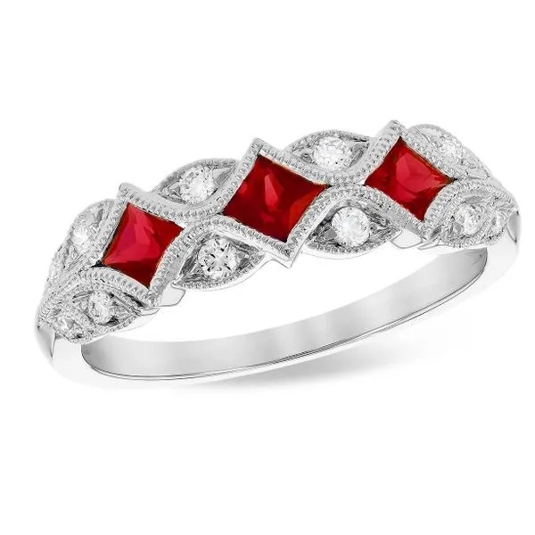 14K Yellow Gold Diamond and Ruby Filigree Pattern Stackable Ring