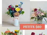 Please note: All photos shown are examples of our style and quality. Each arrangement is uniquely designed based on your selected palette and the freshest flowers available that week.