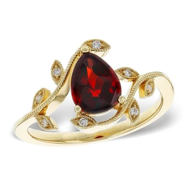 14K Yellow Gold Diamond and Ruby Filigree Pattern Stackable Ring