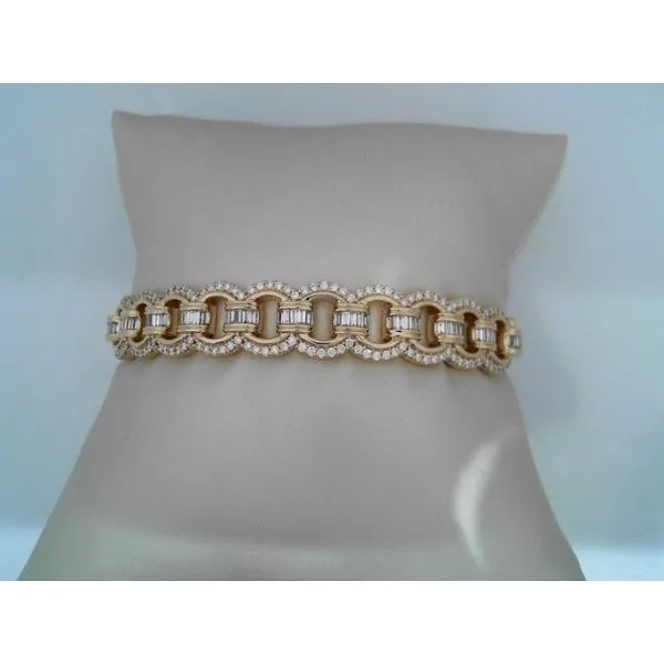 14k Yellow Gold Baguette & Round Diamond Bezel Set Link Bracelet