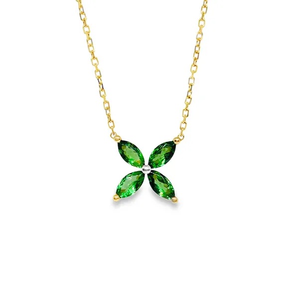 Lds 14k YG Abalone, Tsavorite, and Diamond Fashion Necklace.