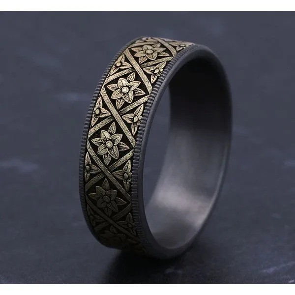 14K Yellow Gold Diamond and Ruby Filigree Pattern Stackable Ring