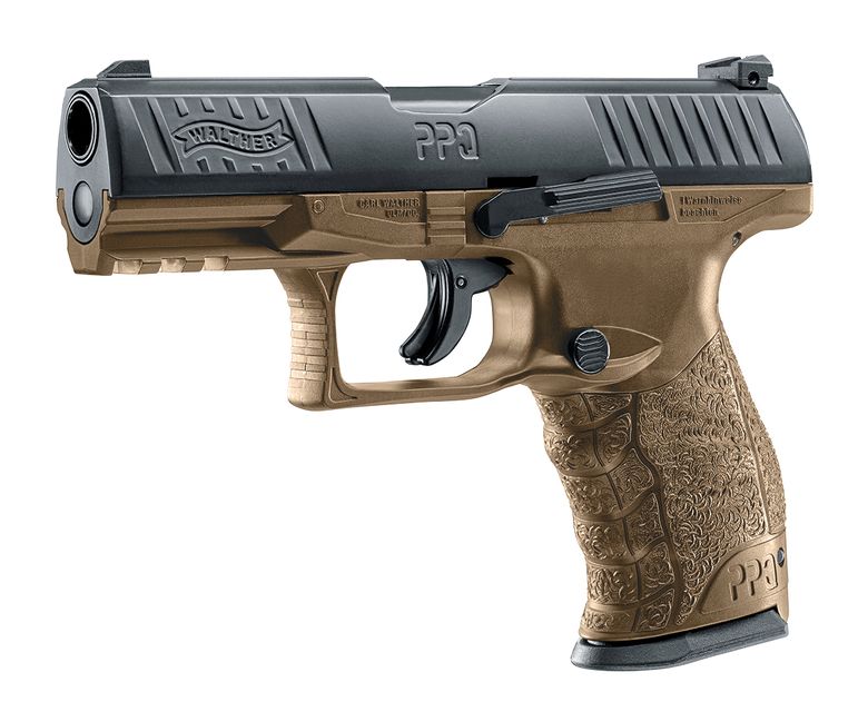 The Walther PPQ M2 .43 caliber paintball pistol is made for training and fun. The Flat Dark Earth version paintball pistol features the superior grip that Walther handguns are famous for as well as a shared holster fit with the firearm. The Walther PPQ M2 paintball pistol shoots eight .43 caliber paint, dust, and rubber projectiles from its drop-free magazine. This marker is rated for 4.5 Joules.