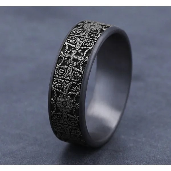 14K Yellow Gold Diamond and Ruby Filigree Pattern Stackable Ring