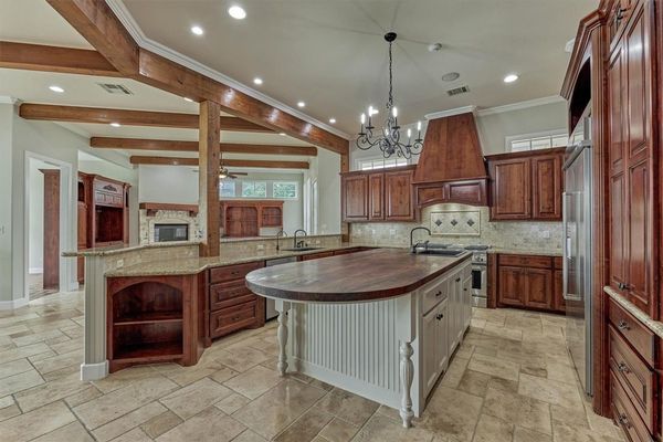 Stunning multigenerational waterfront estate designed for both luxury living and effortless entertaining. Showcasing breathtaking water views, exquisite millwork, custom built-ins, expansive windows, and timeless finishes throughout. Enjoy a resort-style pool and multiple living areas including media and game rooms, formal dining, and a sun-filled sunroom. The inviting family room with stone fireplace and wood beams flows seamlessly into a gourmet kitchen featuring an 8-ft mesquite island, oversized refrigerator, and custom cabinetry. The owner’s retreat offers peaceful water views, a spa-like bath, and custom closet. Private guest quarters with kitchen provide ideal extended-stay accommodations, while secondary bedrooms offer space and charm. Amenities include elevator, 4 HVAC systems, generator, water softener/purifier, integrated audio, fitness room, and plantation shutters.