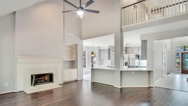 Beautifully updated and move-in ready, this Alden Bridge home for sale in The Woodlands, TX offers the perfect blend of style, comfort, and location. This spacious 4-bedroom home features soaring high ceilings in the entryway and family room, a private primary suite downstairs, and a versatile upstairs teen suite.