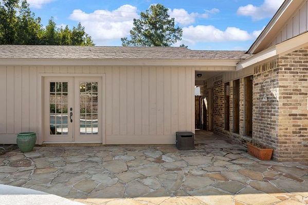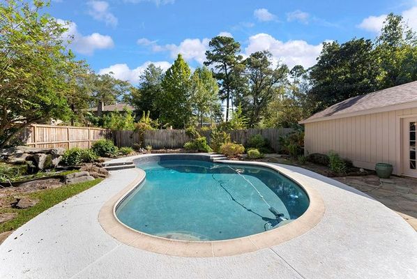 Prime Location is Conroe - just walking distance to Conroe High School! This four-bedroom, two-and-a-half bath corner lot home offers great curb appeal, classic charm, a sparkling pool and a detached game room - perfect for entertaining! With soaring ceilings throughout, this home features a study, a separate dining area and a spacious family room with a gas-log fireplace with a floor-to-ceiling white brick surround. The kitchen offers updated appliances and ample counterspace. The primary bedroom is on the first floor with an ensuite bath with dual vanities and a large walk-in closet. Upstairs, you will find three generously sized bedrooms and a full bath. The converted garage serves as a climate-controlled game and party room with a full bar and sink! Designed for ultimate enjoyment, the expansive backyard has a sparkling pool surrounded by flagstone decking, native greenery and a waterfall feature- ideal for lounging or large gatherings! NEW ROOF in 2023!