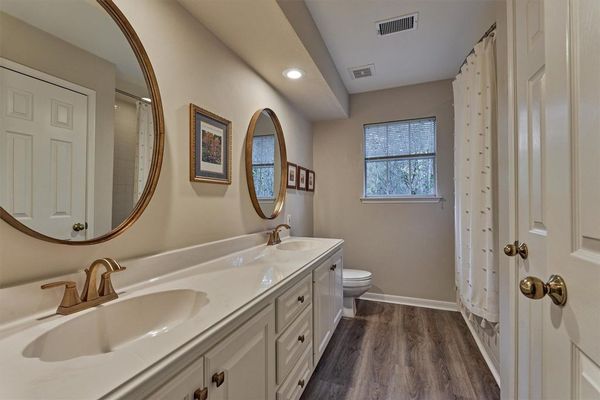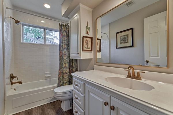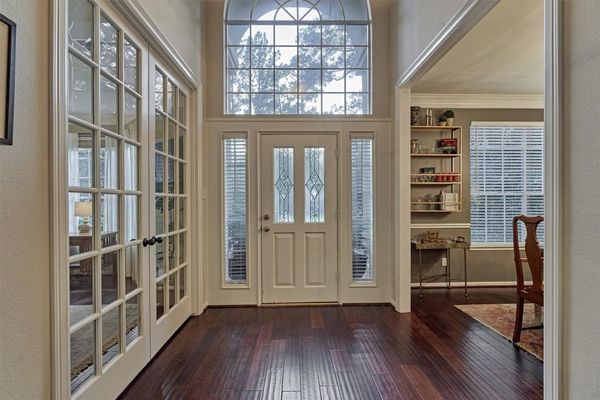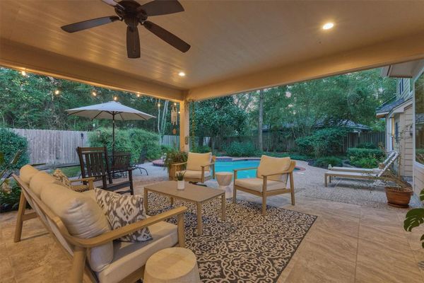 Nestled on a serene cul-de-sac in the heart of The Woodlands, this remarkable home is a perfect blend of warmth, elegance, and modern functionality. As you step into the inviting open-concept layout, you’re greeted by an abundance of natural light streaming through large arched windows, illuminating the spacious living area adorned with rich wood floors and a stunning fireplace that serves as a cozy centerpiece. The gourmet kitchen, is a culinary dream with its gleaming granite countertops, sleek stainless steel appliances, and custom cabinetry, effortlessly flowing into a cozy breakfast nook and an elegant formal dining room. The backyard dazzles with a sparkling pool and spa surrounded by lush landscaping, creating a tranquil retreat for relaxation. The expansive covered patio beckons for al fresco dining or simply unwinding while enjoying the serene surroundings. This home also features a dedicated office space that provides a quiet sanctuary for work or study, while the versatile game room upstairs invites endless possibilities. Impeccably maintained, this residence boasts recent updates, including a new roof (2023), HVAC units (2023 & 2024), along with a beautifully resurfaced pool (2017) and a new pool heater (2018), ensuring comfort and peace of mind for years to come.