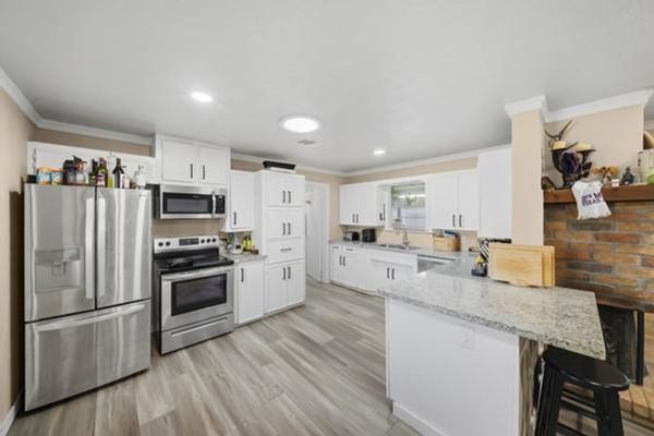 Discover the perfect blend of comfort and convenience in this recently updated 4-bedroom, 2-bath home just a short stroll from campus and Aggie games! Nestled on a quiet street just one block south of campus, this gem boasts a brand-new roof (2025) and modern upgrades throughout, including luxurious vinyl plank flooring in common areas, plush new carpeting in bedrooms, and a full electrical overhaul. With a spacious open-concept kitchen that seamlessly connects to the living room and dining area, entertaining is a breeze. Enjoy the serenity of your shady yard adorned with majestic oak trees, a perfect spot for gatherings on the expansive back patio. An attached 1-car garage and double driveway provide ample parking, while the included refrigerator and two storage sheds cater to all your needs. With current student leases extending until May 15, 2026, this property is not just a house; it’s an opportunity for a smart investment in a prime location. Don’t miss out—text the agent today to schedule your private showing!