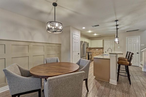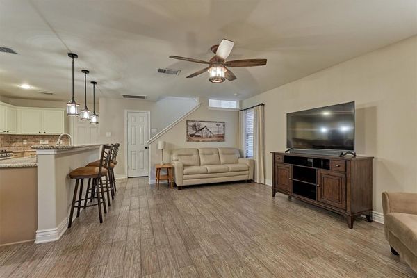 Welcome to your dream home! This stunning 3-bedroom, 2.1-bath townhome is a true gem, brimming with upgrades and modern amenities that elevate your lifestyle. From the moment you step inside, you’ll be captivated by the beautiful wood-look tile floors that exude warmth and elegance, perfectly complementing the airy, open floor plan. The inviting living room, anchored by a cozy fireplace, seamlessly transitions into the updated kitchen, where culinary delights await. Revel in the luxury of granite countertops, stainless steel appliances, and generous cabinetry, making entertaining a breeze. Retreat to the tranquil primary suite, featuring dual sinks, a sumptuous soaking tub, and a separate glass-enclosed shower for the ultimate relaxation experience. Two additional spacious bedrooms provide ample room for family or guests, thoughtfully separated from the primary suite for added privacy. Step outside to your very own private oasis, complete with maintenance-free artificial grass and a charming brick patio, perfect for intimate gatherings or peaceful solitude. With its neutral finishes and modern touches, this home is ready for you to make it your own. Ideally located near shopping, dining, parks, and top-rated schools, this townhome offers convenience at your fingertips. Plus, the seller is open to contributing towards new carpet, making this an opportunity you won’t want to miss! Come see for yourself and imagine the possibilities!