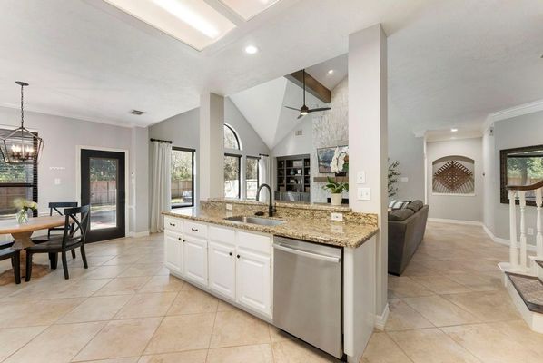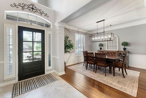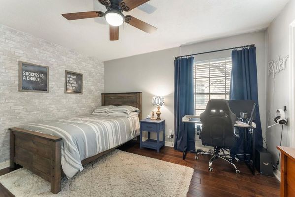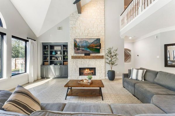 Timeless style, modern comfort and a prime location - this STUNNING classic brick home with manicured lawn and 3-car garage is within walking distance to exemplary Buckalew Elementary and Lakeside Park! This bright and airy home features soaring ceilings, abundant natural light, and a thoughtfully designed layout. A dramatic two-story entry showcases architectural details, engineered wood flooring and modern lighting throughout. The home offers a formal dining area, private study and spacious family room with vaulted beamed ceiling and expansive windows, flowing seamlessly to the breakfast room and bright gourmet kitchen with white cabinetry and KitchenAid appliances. The relaxing primary suite features a spa-like bath with dual vanities, soaking tub and large walk-in closet. Upstairs includes a game room, four generously sized secondary bedrooms and two full baths. Step outside to your private backyard oasis with a sparkling pool/spa, expansive decking and plenty of green space.
