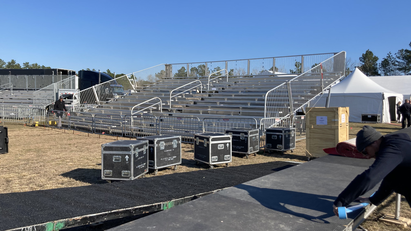 CONROE TX -- Kriss Aubry of Conroe Today, is on site the day before the "Save America" Rally at the Montgomery County Fairgrounds, Conroe Texas.